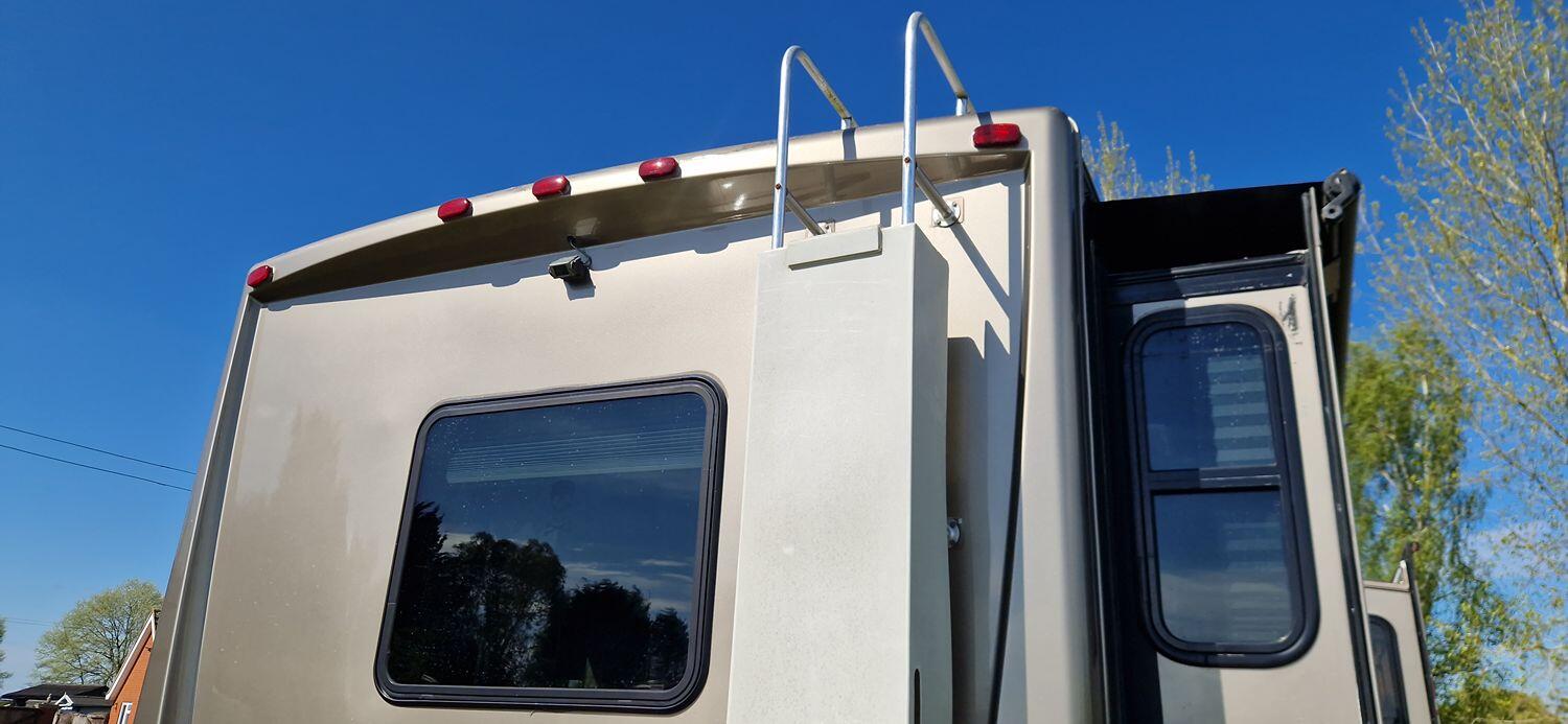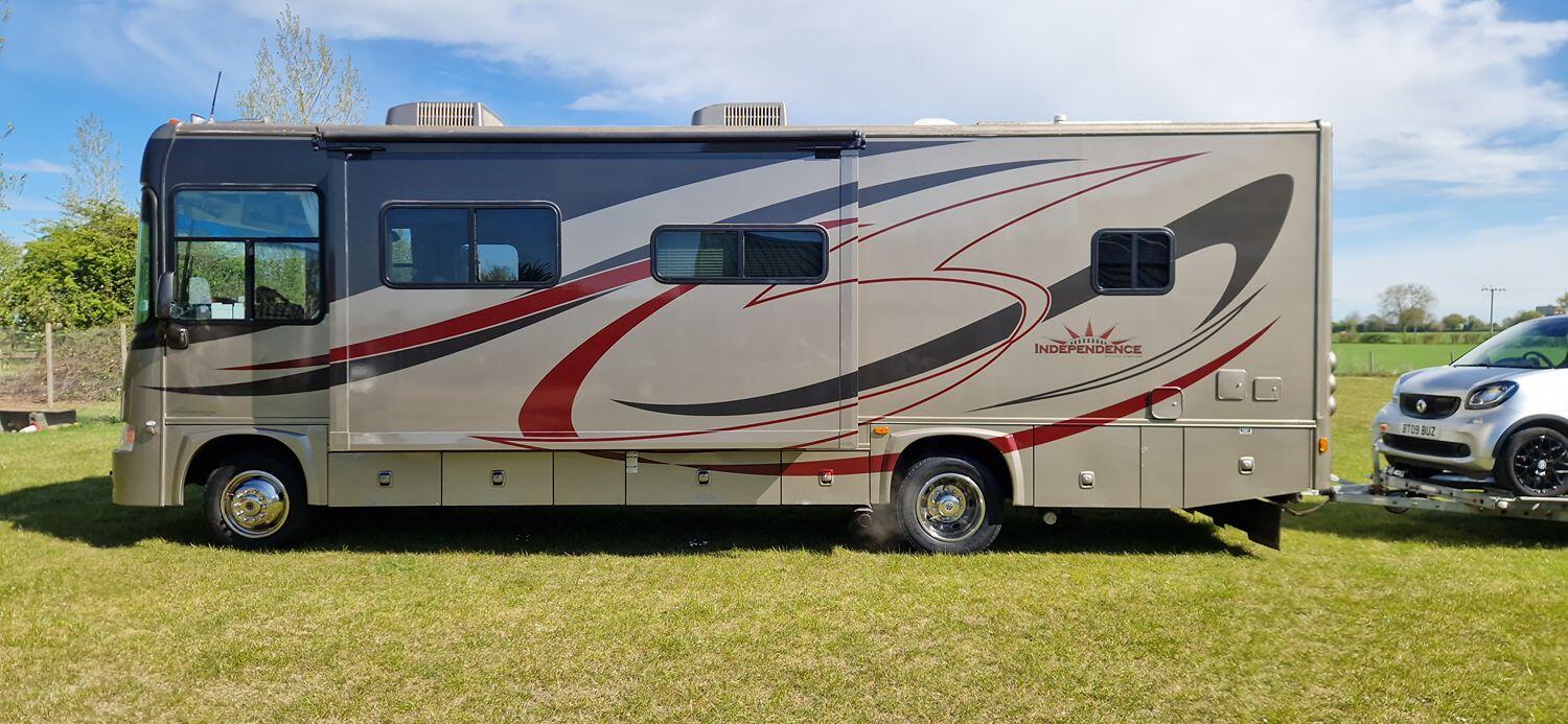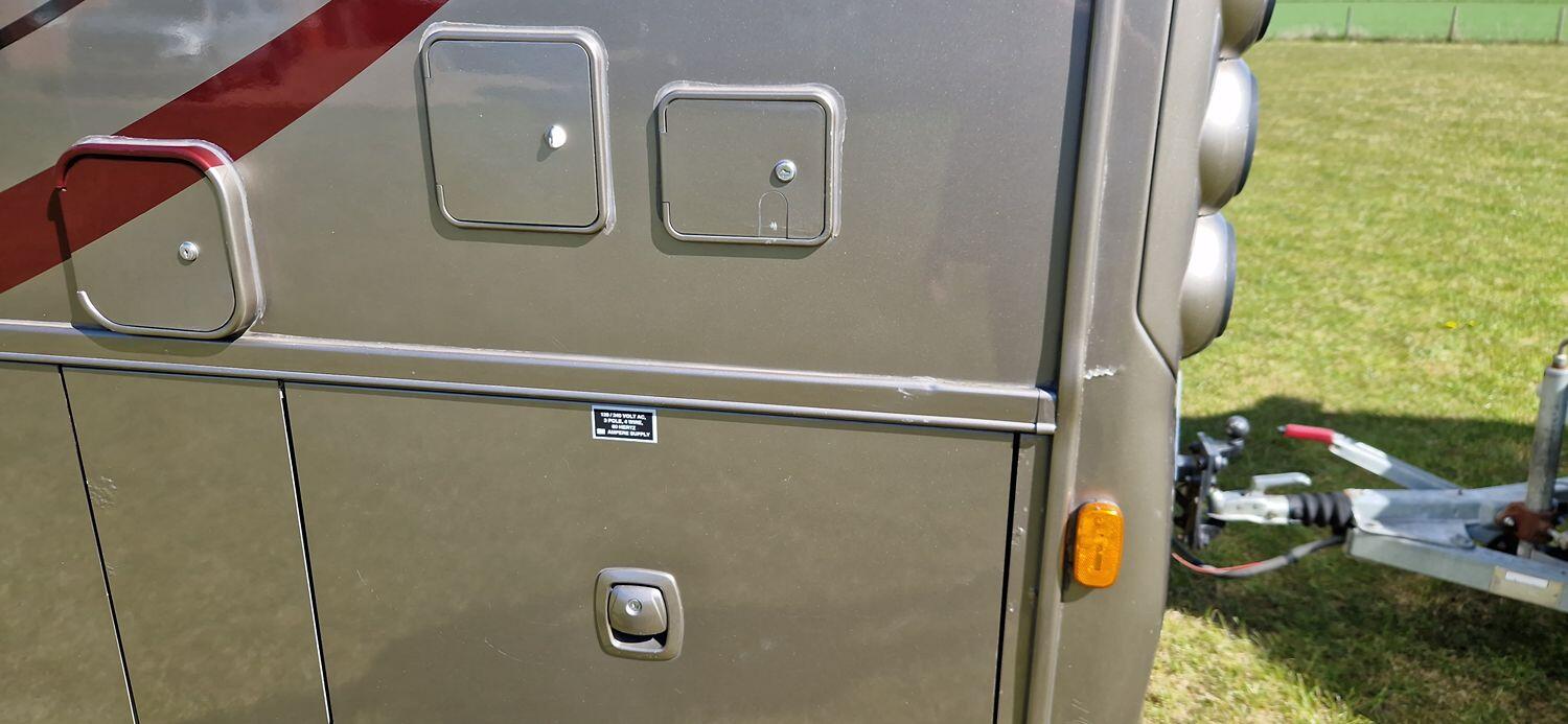 To be totally clear there are some points to mention as follows. The Lockers are aluminum and some paint flaking to them is apparent. The awning has small damage to the cover but is still very usable. There is small damage to the rear nearside and a scratch on the offside front.