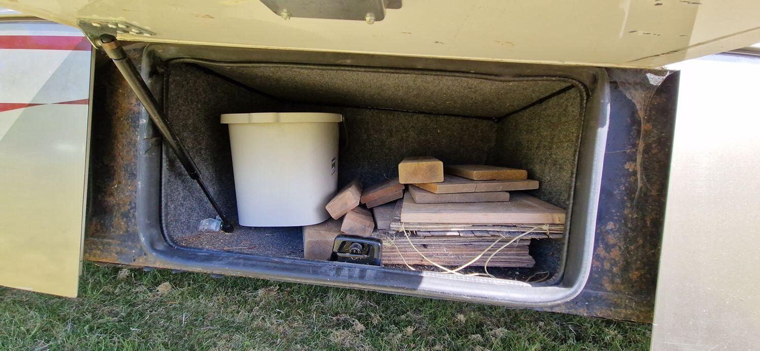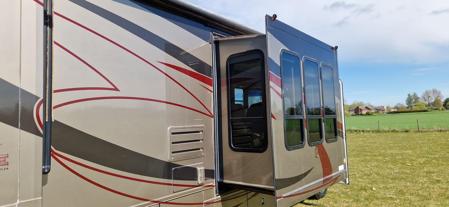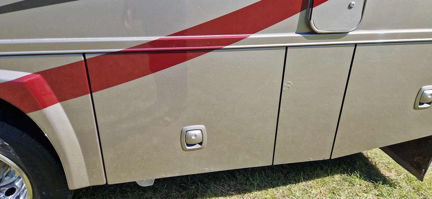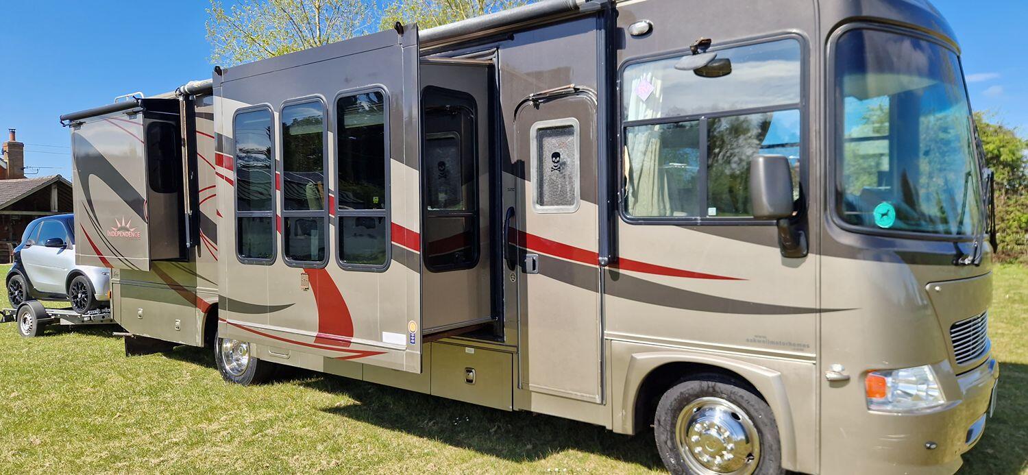 To be totally clear there are some points to mention as follows. The Lockers are aluminum and some paint flaking to them is apparent. The awning has small damage to the cover but is still very usable. There is small damage to the rear nearside and a scratch on the offside front.